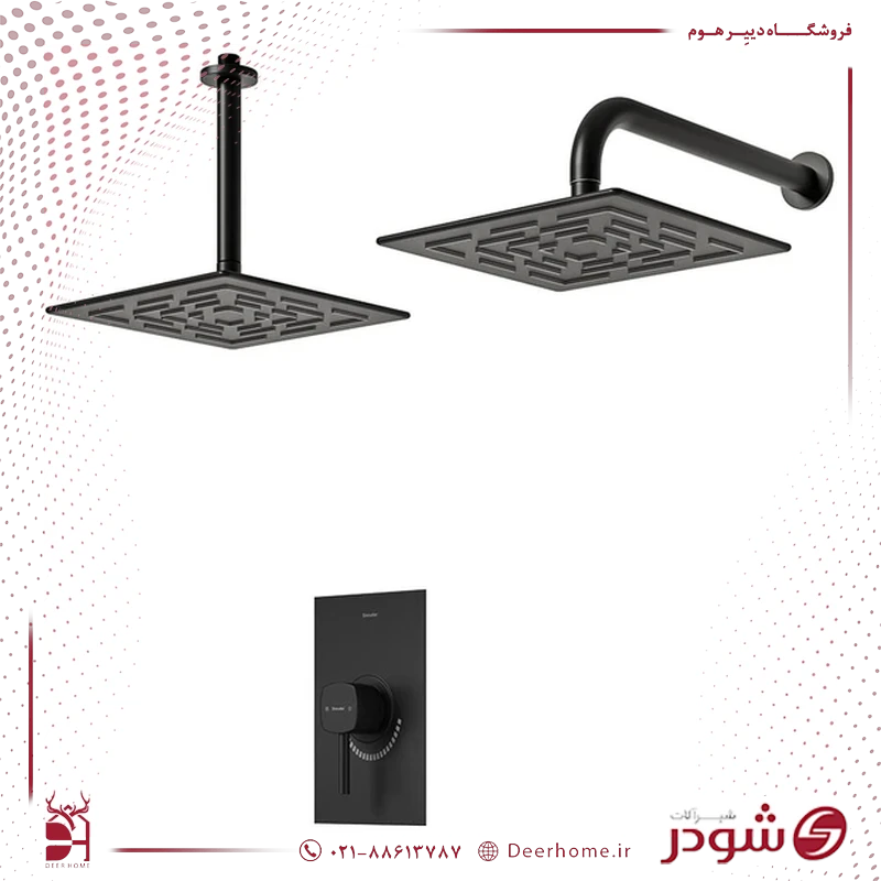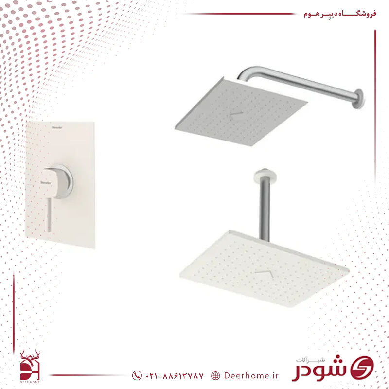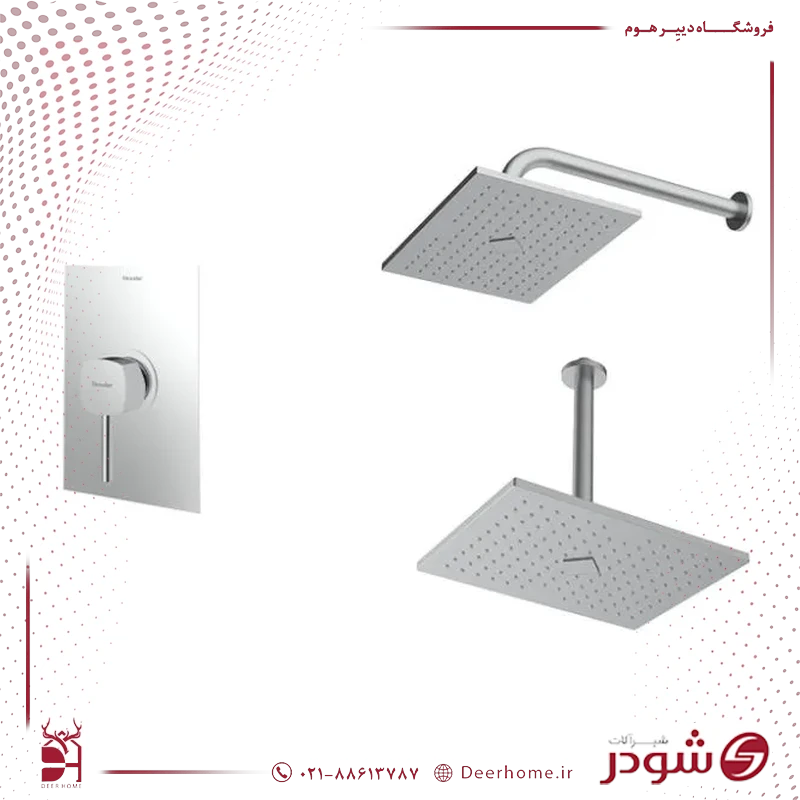- سردوش ثابت:سردوش ثابت این مدل، آب را به صورت یکنواخت پخش کرده و تجربه ای لذت بخش از دوش گرفتن فراهم می کند. این سردوش با نازل های ضد رسوب طراحی شده است که مانع تجمع رسوبات آب می شوند و نظافت آن ها بسیار آسان است.