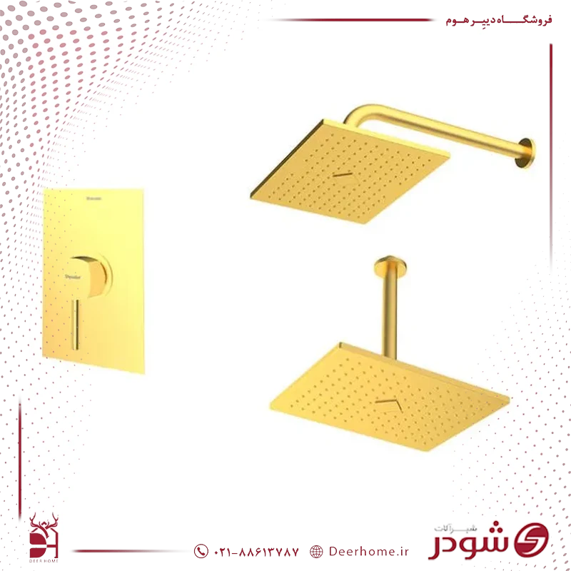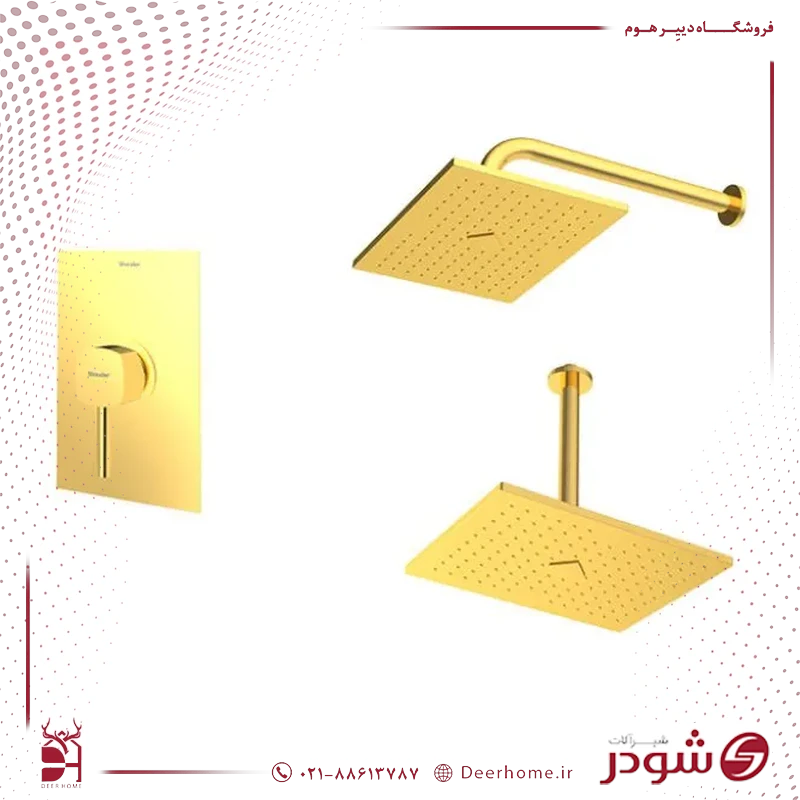 - متعلقات دوش توکار شودر مدل رومر تیپ 1 رنگ مشکی طلایی:مشکی طلایی، انتخابی لوکس و منحصر به فرد برای افرادی است که به دنبال طراحی های خاص هستند.