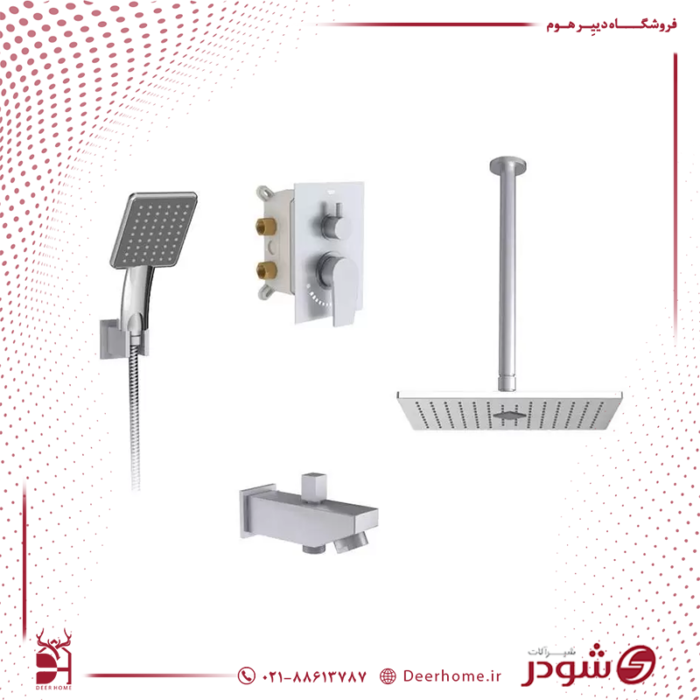 - اجزای کامل و کاربردی:این مدل شامل اجزای کاملی مانند پلیت، سردوش ثابت، بازویی سقفی، سردوش متحرک و آبریز است. تمامی این اجزا به صورت یکپارچه و هماهنگ طراحی شده اند تا نهایت کارایی و زیبایی را ارائه دهند.